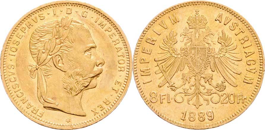 8 Zlatník 1889, 6.442g, dr.hr., dr.rysky, pěkná patina