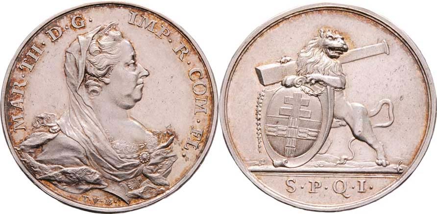 Berkel - holdování města Ypern (1779) - portrét zprava, opis / lev se štítem a dělovou hlavní, nápis, Sign.TvB, Ag 32mm, 11.017g, M.2092, H.2985, vl.rysky