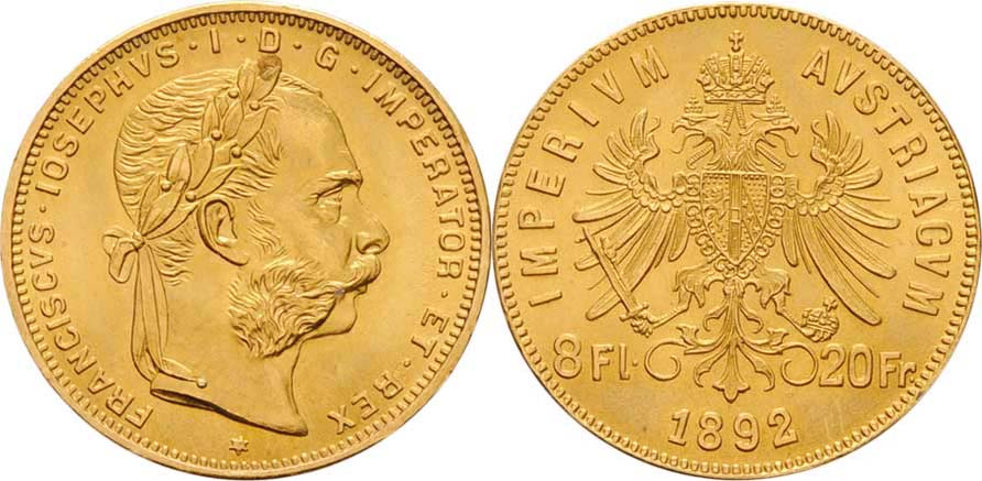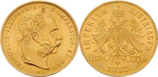 8 Zlatník 1892 - novoražba, 6.444g, nep.hr.