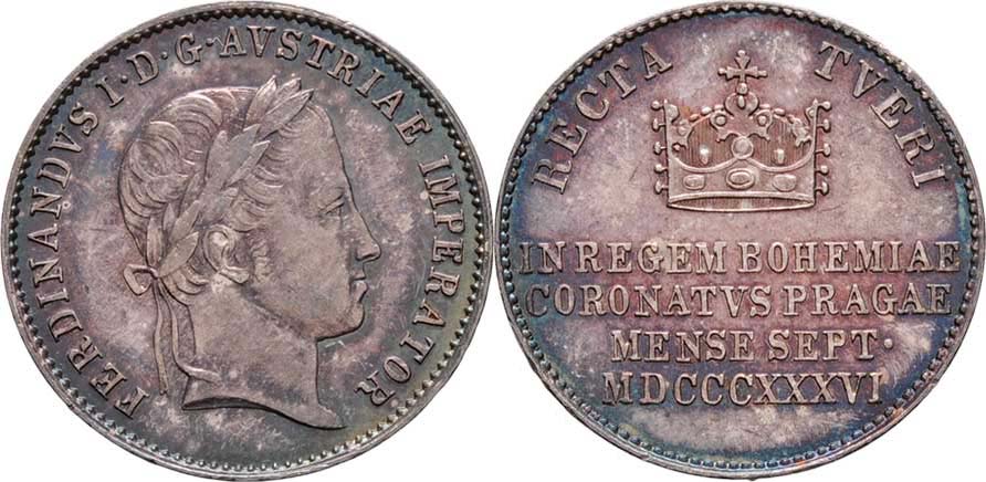 AR větší jeton na korunovaci v Praze 7.9.1836 - hlava zprava, opis / koruna, opis a 4-řádk. nápis, Nesign., 20mm, 5.457g, Nov.D.3b, ČS.1495, P.3/22, M.2564, pat.