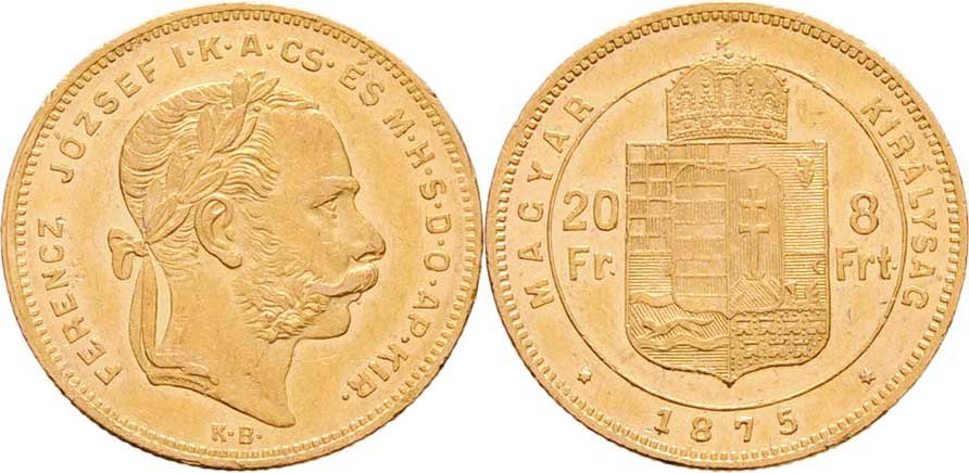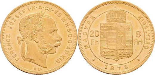 8 Zlatník 1875 KB, 6.441g, nep.hr., nep.rysky, pěkná patina, téměř