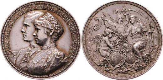 Scharff - AR medaile na svatbu v Ischlu 31.VII.1890 - dvojportrét zleva, opis / alegorie, znaky, nápis, Sign., 43mm, 39.753g, H.4017, Haus.408, hr., nep.rys.