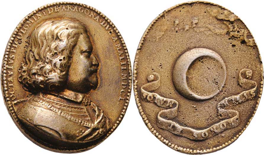 G.Pfrundt - bronz. litá oválná portrétní medaile 1650 - poprsí zprava, opis / nápis na stuze, velký měsíc, kajina, Sign., 38/45 mm, 54.004g, BPM.309, vady m. R!