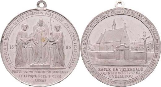 Papež mezi Cyrilem a Metodějem, opis a nápis, 1885 / kaple Cyrilka, opis a nápis, cín 38 mm s původním raženým ouškem, 11.553g, nep.rysky, krásná patina