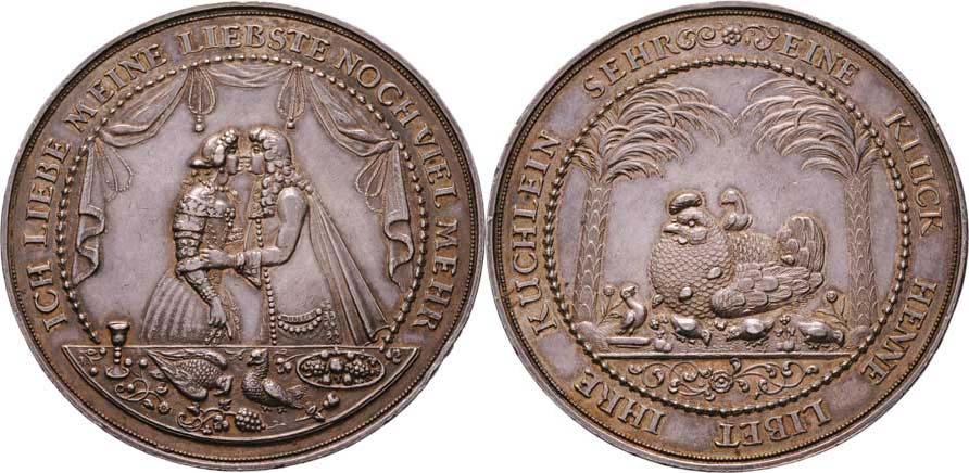 Nesign. - muž a žena se líbají u bohaté tabule, opis / alegorie rodinného života, opis, b.l. (cca 1800), Ag 54mm, 43.442g, hr., nep.rysky, pěkná patina, téměř