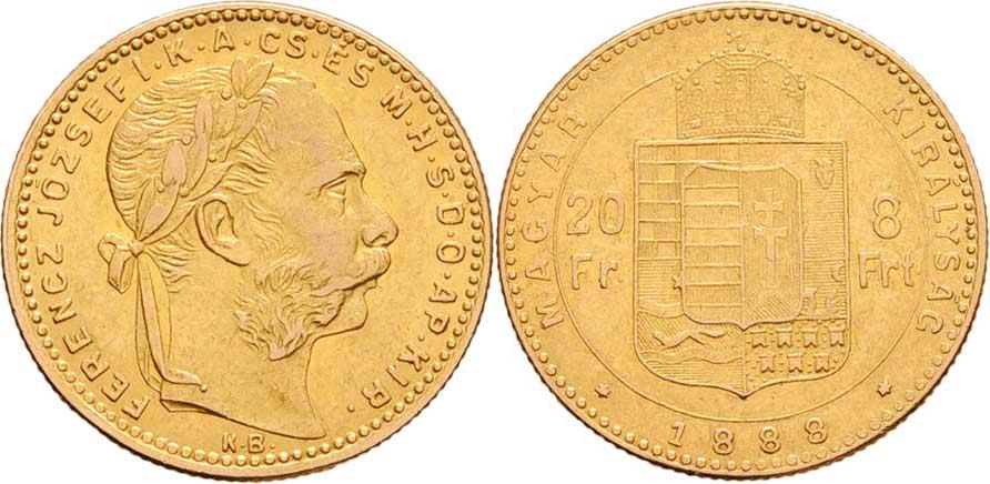 8 Zlatník 1888 KB, 6.437g, nep.hr., nep.rysky, pěkná patina, téměř