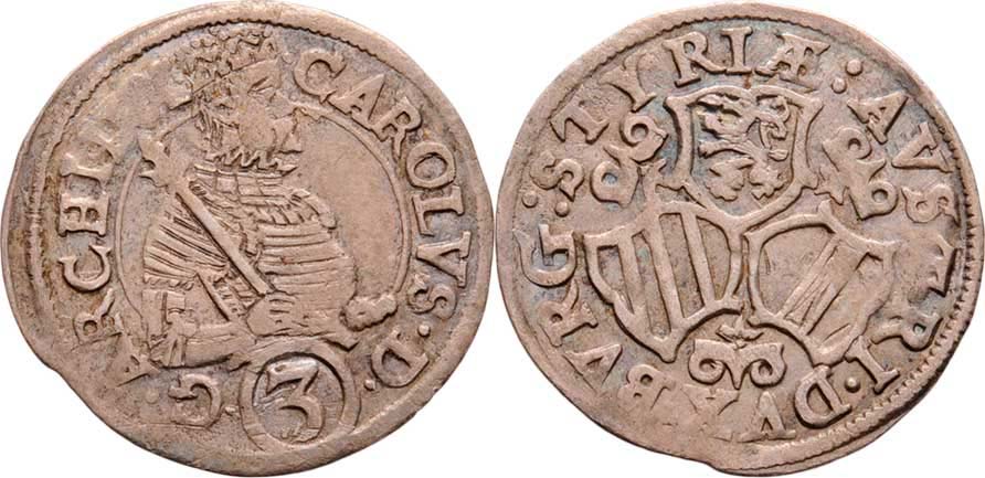 3 Krejcar b.l., Štýrský Hradec, M-A.48 (tab.8/25) - vnitřní kruh pouze v Av., 1.864g,, pěkná pat., téměř 1.602g, mírně exc., nedor., pěkná patina