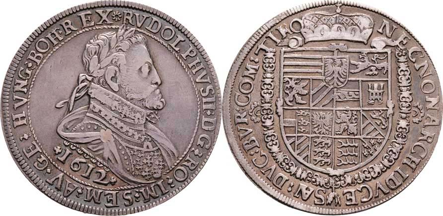 Tolar 1612, Hall-Lindner, M-A.99, M-T.386 - letopočet pod poprsím, 26.706g, mírně okrájený, pěkná patina R!