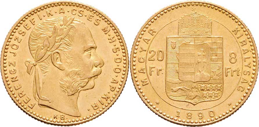 8 Zlatník 1890 KB - bez znaku Rijeky, 6.445g
