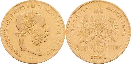 4 Zlatník 1881 (pouze 8.370 ks), 3.194g, nep.hr., nep.rysky RR!