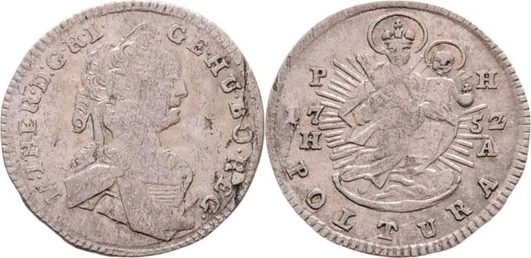 Ag Poltura 1752 H-A, Hall pro Uhry, N.85, M-A.253, 0.945g, dr.vady materiálu, dr.rysky, pěkná patina R!
