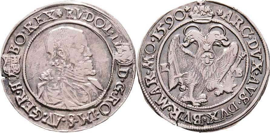 1/4 Tolar 1590 KB, Hal.322, Husz.1046, 7.087g, vada materiálu na hraně, nedor., nep.dvojráz, pat. R!