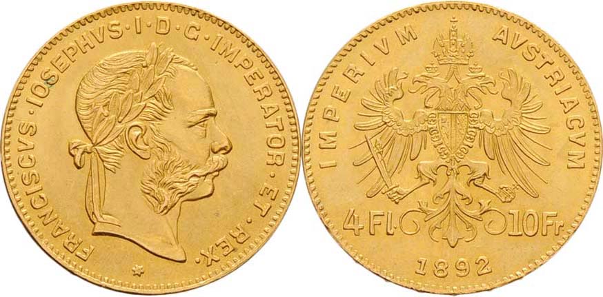 4 Zlatník 1892 - novoražba, 3.221g, nep.hr.ražbou, skvrnka