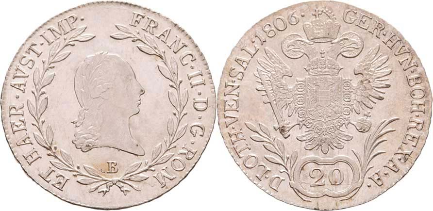 20 Krejcar 1806 B - s říšskou korunou a tituly císaře římského a rakouského, 6.651g, nep.rysky