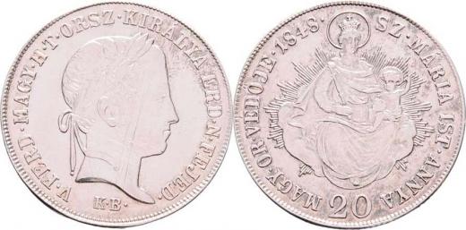 20 Krejcar 1848 KB - s madonou a maďarským opisem (revoluční), 6.695g, just., nep.hr., nep.rysky