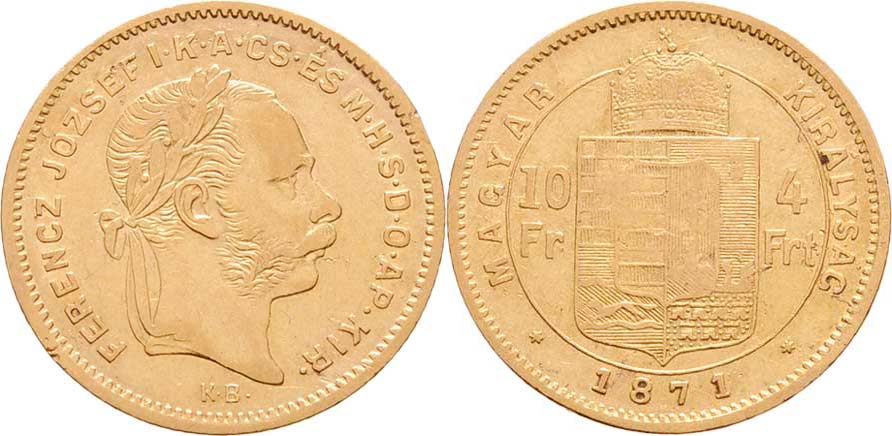 4 Zlatník 1871 KB, 3.188g, dr.hr., dr.rysky, pěkná patina
