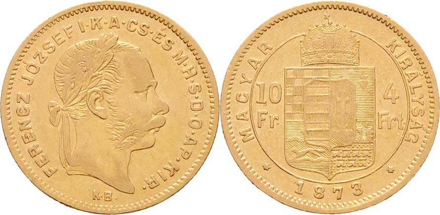4 Zlatník 1873 KB (pouze 13.000 ks), 3.218g, nep.hr., nep.rysky, pěkná patina R!