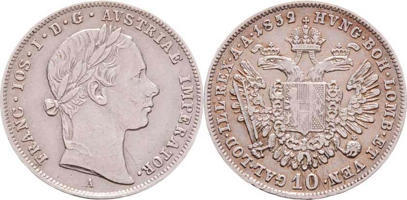 10 Krejcar 1852 A, 2.128g, dr.hr., rysky, patina RR!