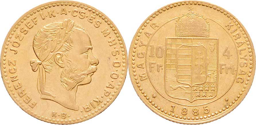 4 Zlatník 1885 KB (pouze 64.000 ks), 3.206g, nep.hr., nep.rysky, téměř R!
