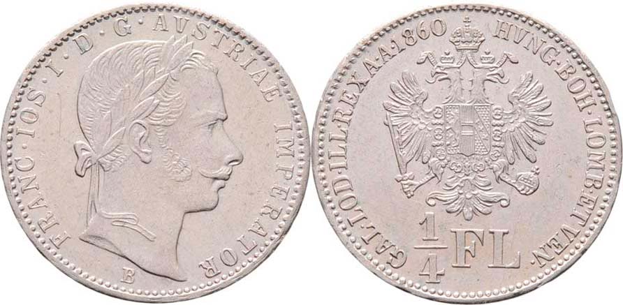 1/4 Zlatník 1860 B, 5.339g, nep.hr., nep.rysky, pěkná patina