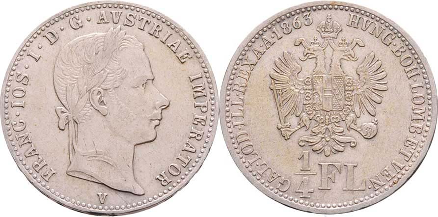 1/4 Zlatník 1863 V, 5.327g, nep.hr., vlas.rysky, pěkná patina R!