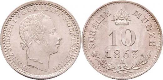 10 Krejcar 1863 A, 2.003g, dr.vada razidla, nep.hr., nep.rysky, pěkná patina
