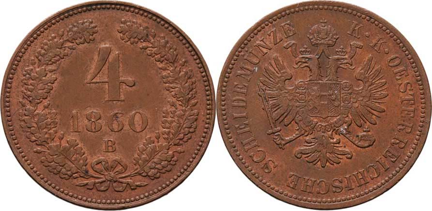 4 Krejcar 1860 B, 13.461g, nep.hr., nep.rysky, pěkná patina