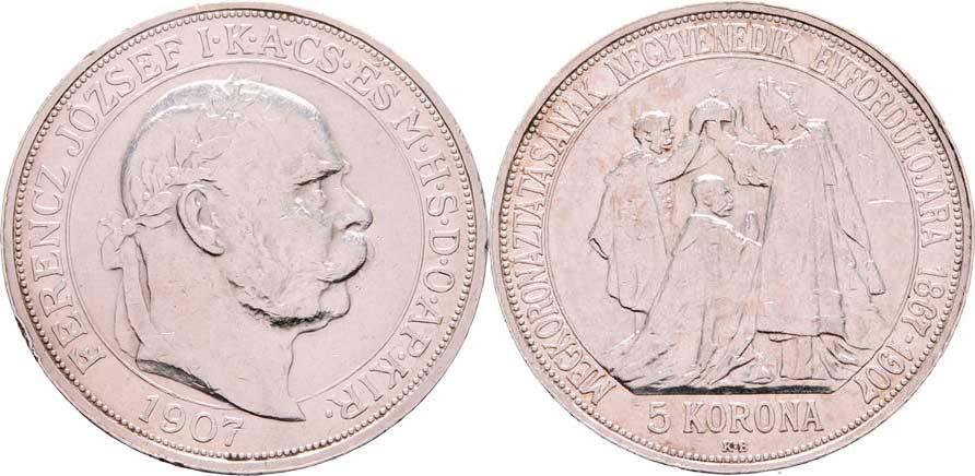5 Koruna 1907 KB - jubilejní, 23.972g, dr.hr., dr.rysky