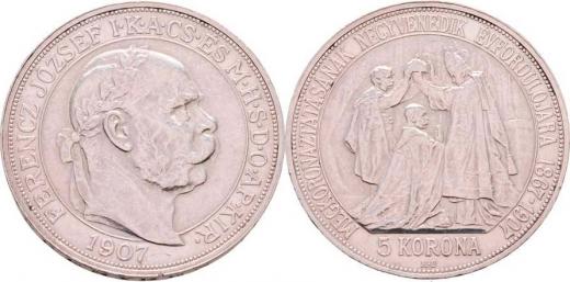 5 Koruna 1907 KB - jubilejní, 23.915g, nep.hr., nep.rysky, pěkná patina, téměř