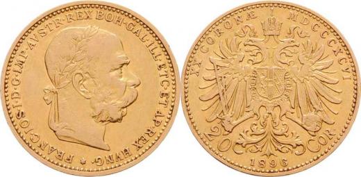 20 Koruna 1896, 6.738g, nep.hr., nep.rysky, pěkná patina