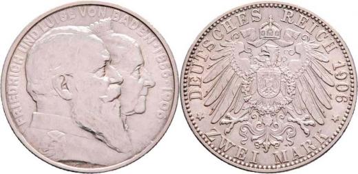 2 Marka 1906 - zlatá svatba, KM.276 (Ag900), 11.073g, nep.hr., dr.rysky, pěkná patina