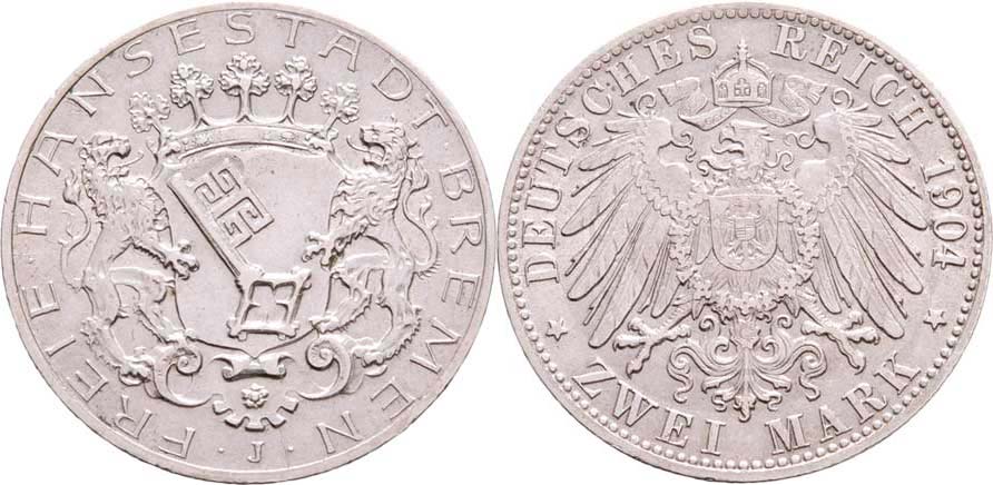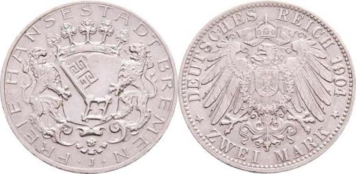 2 Marka 1904 J, KM.250 (Ag900, 100.000 ks), 11.087g, nep.hr., nep.rysky, pěkná patina, téměř R!