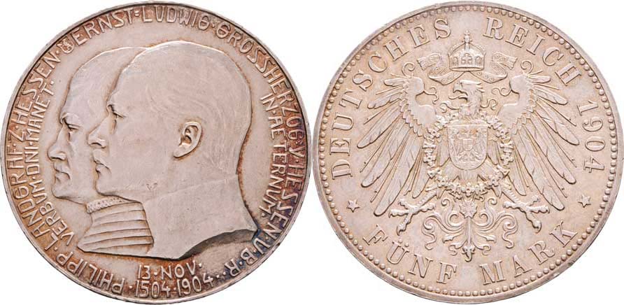 5 Marka 1904 - jubilejní, KM.373 (Ag900, pouze 40.000 ks), 27.754g, nep.hr., nep.rysky, pěkná patina R!