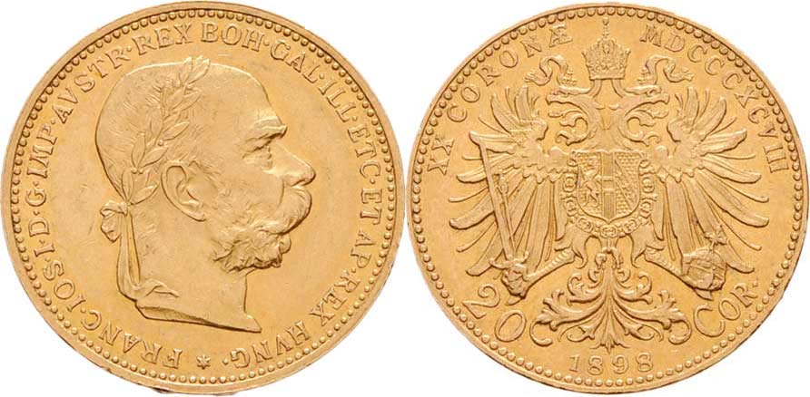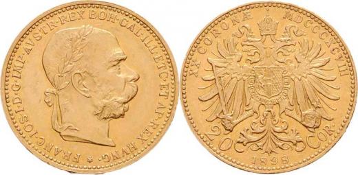 20 Koruna 1898, 6.772g, nep.hr., nep.rysky, pěkná patina, téměř