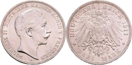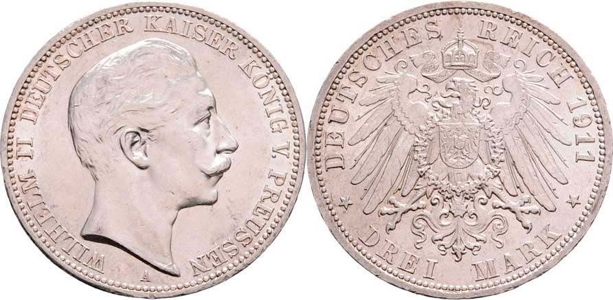 3 Marka 1911 A, KM.527 (Ag900), 16.638g, dr.hr., dr.rysky