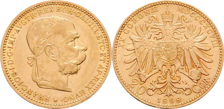 20 Koruna 1898, 6.761g, nep.hr., nep.rysky, patina