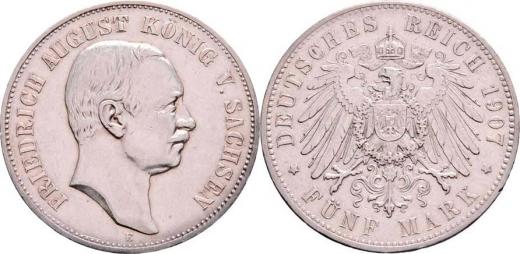 5 Marka 1907 E, KM.1266 (Ag900), 27.716g, dr.hr., dr.rysky, skvrny, patina