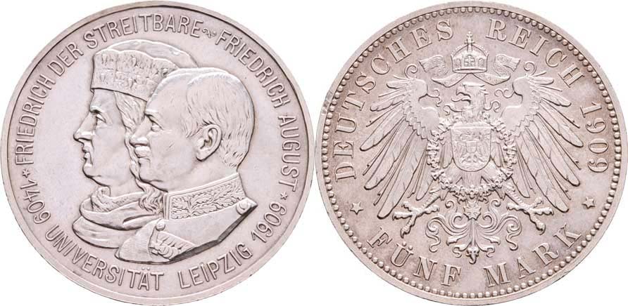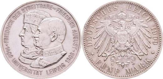 5 Marka 1909 - Universita Lipsko, KM.1269 (Ag900), 27.662g, dr.hr., nep.rysky, téměř