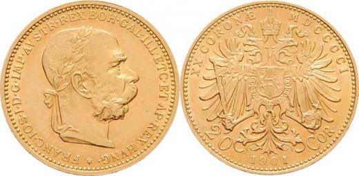 20 Koruna 1901 (pouze 49.000 ks), 6.772g, nep.hr., nep.rysky R!