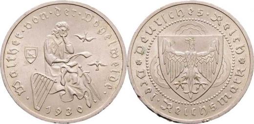 3 Marka 1930 A - Vogelweide, KM.69 (Ag500), 15.038g, hr., nep.rysky, pěkná patina