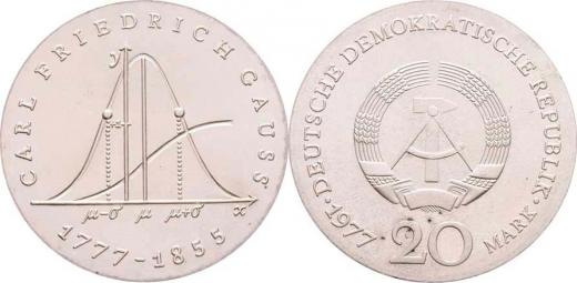 20 Marka 1977 - Carl Friedrich Gauss, KM.66 (Ag500, 20.90g, 55.000 ks), skvrnky, patina R!
