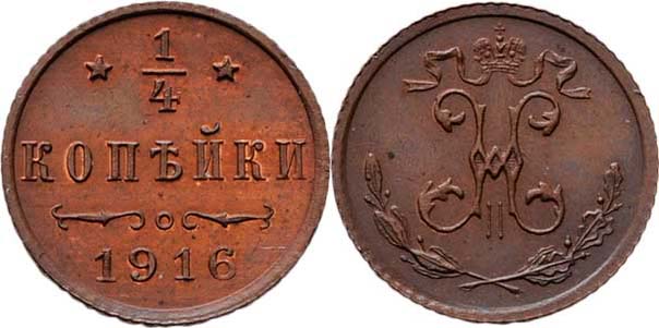 1/4 Kopějka 1916, Petrohrad, Y.47.2 (Cu), 0.891g, nep.hr., nep.rysky, pěkná patina R!