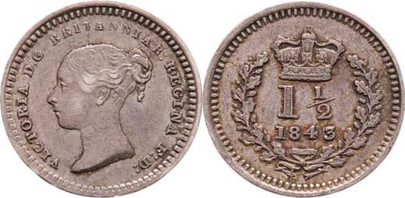 1.5 Pence 1843, KM.728 (Ag925), 0.704g, nep.hr., nep.rysky, pěkná patina