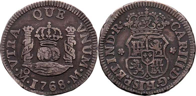 1/2 Real 1768 Mo-M, Mexiko, KM.68 (Ag917), 1.639g, nep.zvlněný, nep.rysky, pěkná tmavá patina, téměř