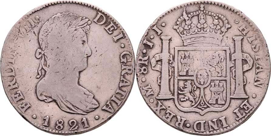 8 Real 1821 Mo-JJ, Mexiko, Cayon.16050, KM.111 (Ag903), 26.700g, hr., rysky, patina