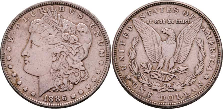Dolar 1886 - Morgan, KM.110 (Ag900), 26.681g, dr.hr., dr.rysky, patina