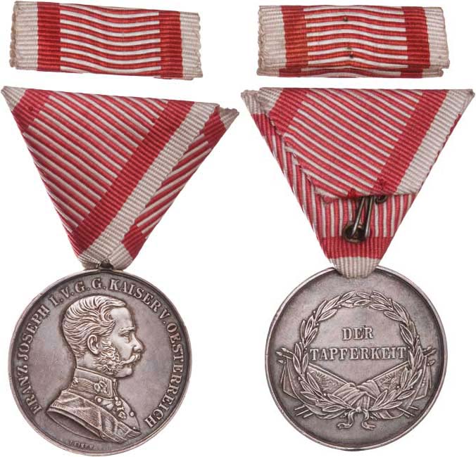Velká stříbrná medaile za statečnost, Marko.230a, VM1.5-X-d, 1914 - 1917, Sign.Leisek, puncov. Ag800, dr.hr., dr.rysky, původní válečná stuha, malá stužka