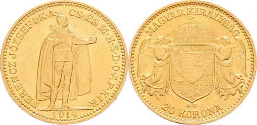 20 Koruna 1914 KB - se znakem Bosny - oficiální hybridní novoražba z roku 1946, Morav.159b (raženo pouze 18.940 ks), 6.766g, nep.hr., nep.rysky R!