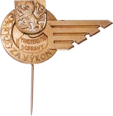 Ministerstvo dopravy - odznak Za výkon, Sign.Pichl, patrně 1945-1948, zlacený bronz 51x29 mm s jehlicí R!