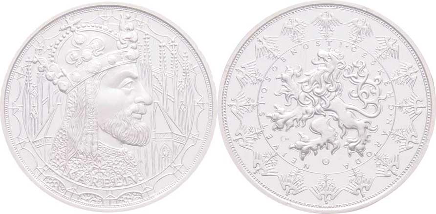 Největší osobnosti českého národa - Karel IV. b.l. - poprsí zprava, most / český lev, opis, kruh orlic, Sign., Ag999, 40mm, 29.246g, kapsle